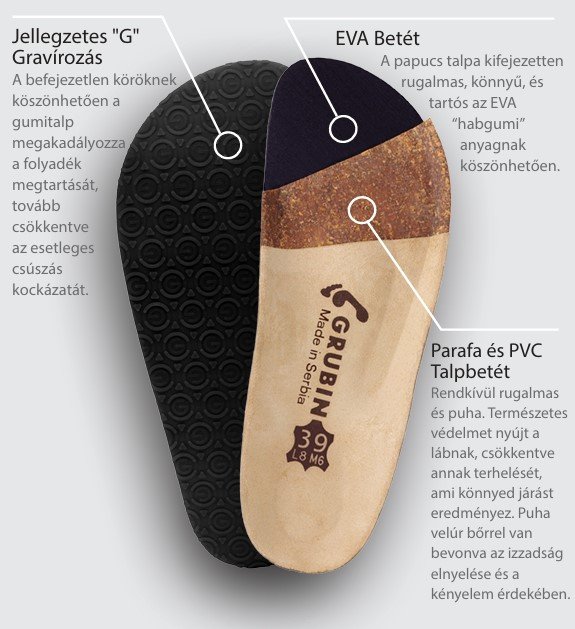 A Classic termékcsalád jellemzője a jól ismert alap GRUBIN talpbetét, ami a maga 7 jellegzetességével biztosítja a kényelmes és egészséges járást. Nagyon hosszan tartó, strapabíró, prémium minőségű sima, és egységes felületű marhabőrt használtunk a gyártásához.